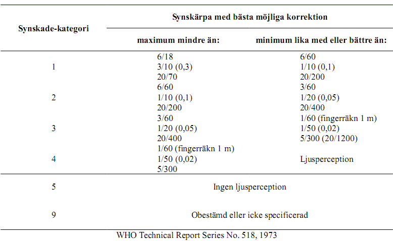 Table in class H54.7